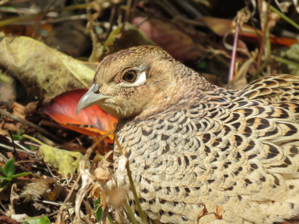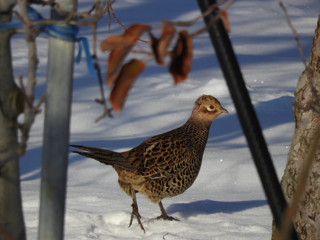 - 日本の国鳥。その名前は誰もが知るあの桃関連の昔話で聞いたことがあるだろう。雄は光沢のある緑色の体と顔にある大きな赤い肉垂が特徴的である。一夫多妻で、繁殖期には一羽の雄が数羽の雌を連れていることもある。ケンケーンと翼を羽ばたかせ縄張りを宣言するほろ打ちという行動をとる。飛ぶのよりも走るのが得意。(くま)