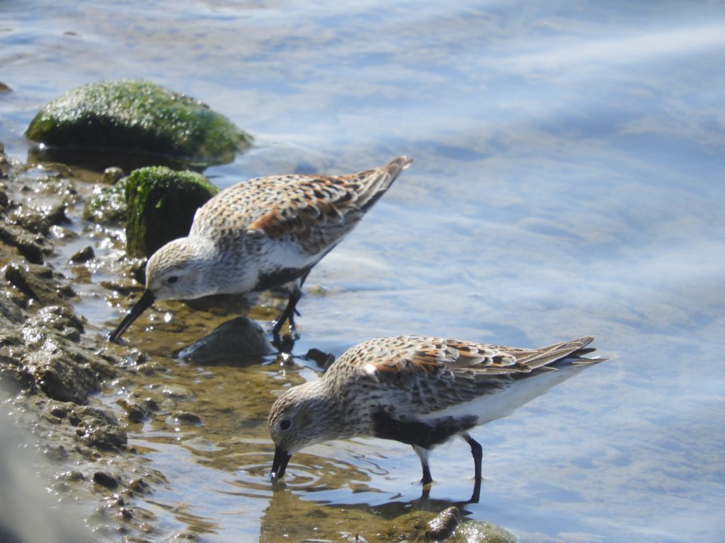 - 干潟や砂地のある海岸などでよく見かけるシギの仲間。全国に旅鳥または冬鳥として渡って来るため、目にする機会も多い。冬羽は全体的に灰色味がある感じだが、夏羽は背中側が赤褐色になり、お腹に黒い大きな斑ができる。早送りしてるようなスピードで動いて砂地の浅い部分にいる甲殻類などを探している。(くま)