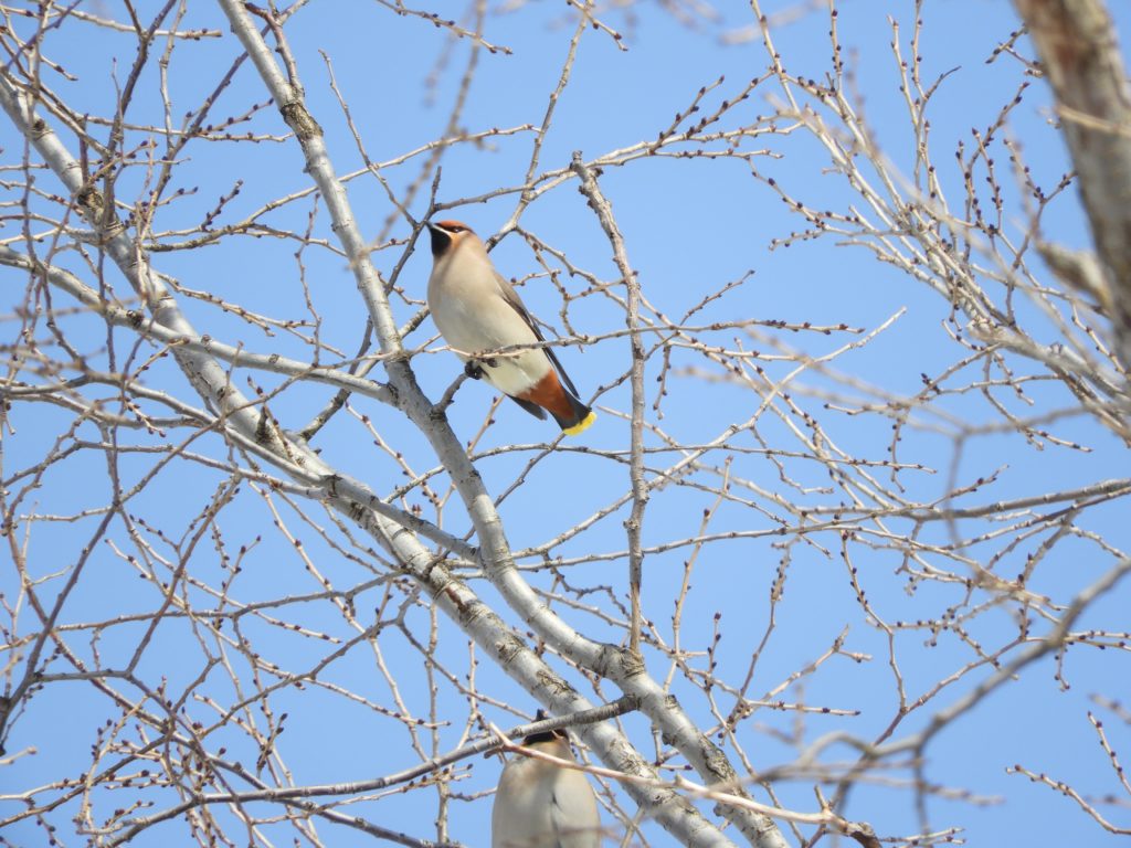 - モヒカンヘアーのような特徴的な冠羽とふっくらした体型が特徴。よく似たヒレンジャクとは尾羽先端の色などで識別できる。ヒレンジャクとは様々な割合で混群をつくり、ヤドリギやナナカマドの実などを群れで移動しながら食べてまわる。次列風切先端に赤いロウ状の突起がある。戦隊ヒーローのような見た目と名前だと思う。(くま)