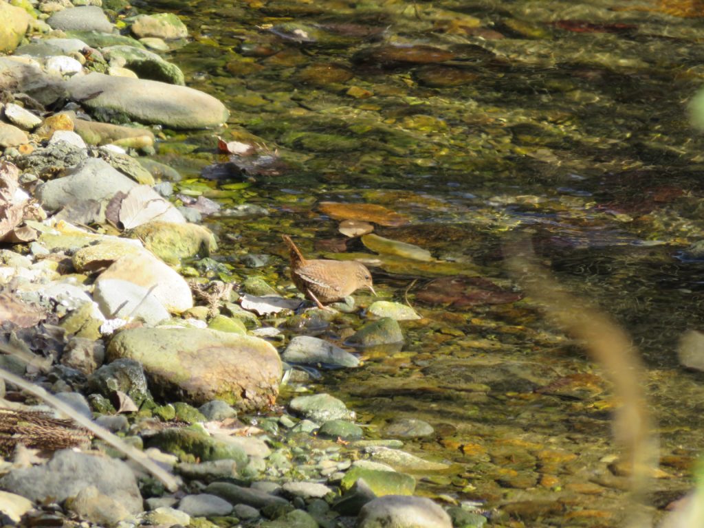 - 小さいのに声量がすごい焦げ茶色の鳥。キクイタダキとならぶ日本最小クラスの鳥である。沢沿いの茂った暗い場所を好むため、小ささもあり見つけづらいが、尾をピンと上に立ててさえずる姿は印象に残りやすい。さえずりは複雑で早口だが美しい。(くま)
