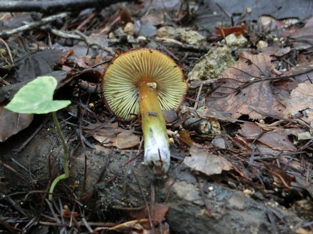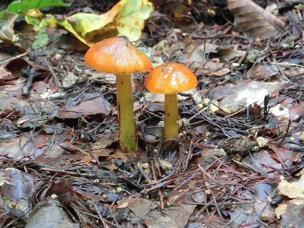 - かさは径2〜4 cm、はじめ円錐形、のちわずかに開き中央部は突出する、橙黄色〜赤色、湿時に粘性があり傷などで黒変する。ひだは淡黄色、やや密。柄は長さ5〜10 cm、黄色〜橙色、中空、傷や老成により黒変する。