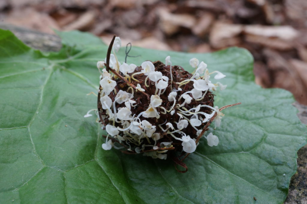 - 落下越冬したブナの殻斗から発生する。