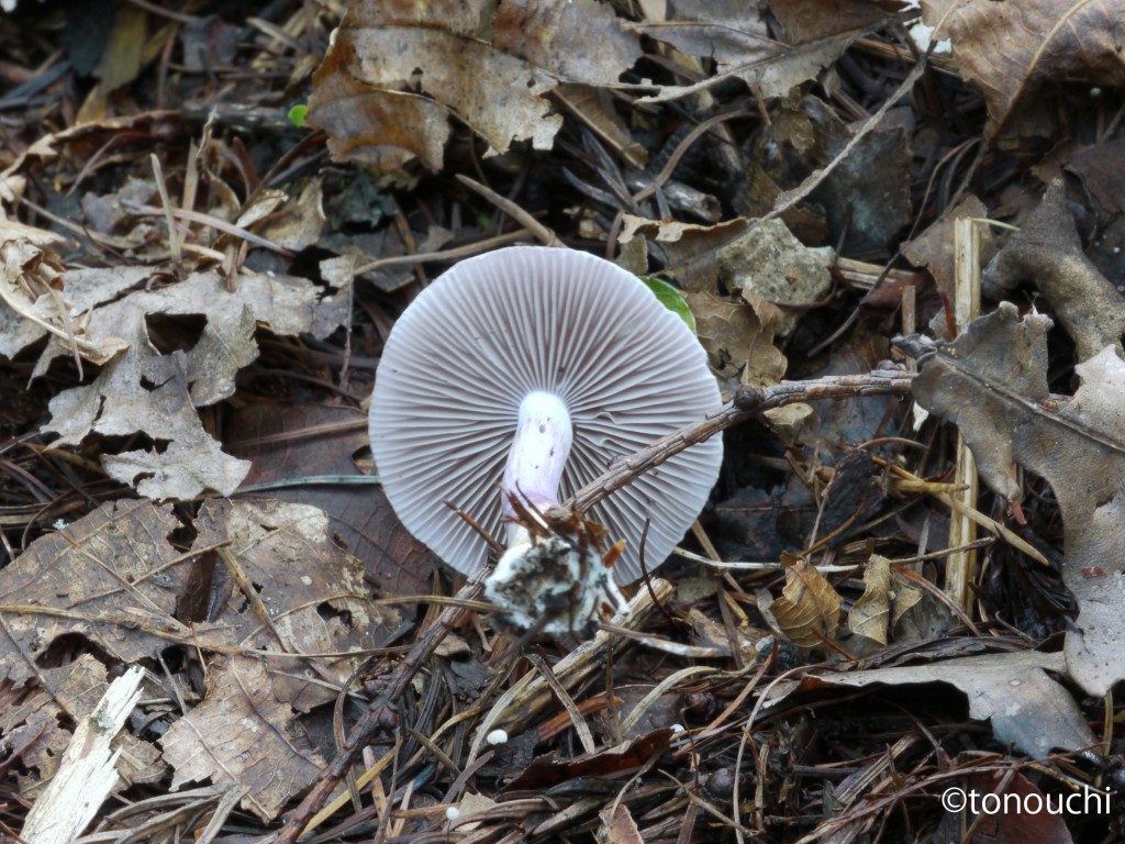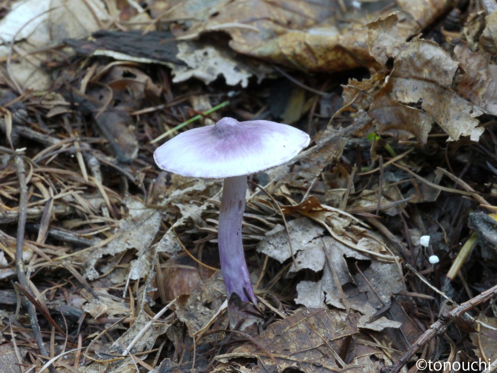 - 菌根菌。かさは径2.5~5cm、表面は濃紫色~ふじ色、著しい粘液につつまれる。ひだは淡紫色のち肉桂色、やや疎。柄は長さ4~7cm、中実~髄状、淡紫色、上位の粘性つばより下方は色淡く粘液におおわれる。