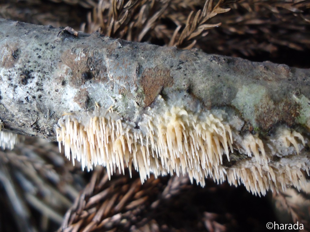 - 材腐朽菌。子実体は背着性、こうやく(膏薬)状に拡がり不整形、全体白色~クリーム色、やがて淡い茶色から熟すと褐色に変わる。周縁部を除きほぼ全面から長さ5~10㎜、径1㎜内外の針(子実層托)を垂らし表面に担子胞子を生じる。