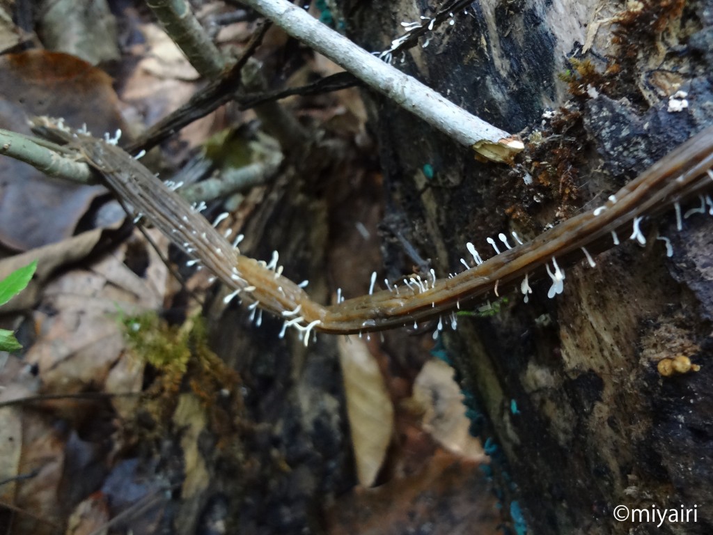 - 腐ったフキ葉柄上に多数発生する。