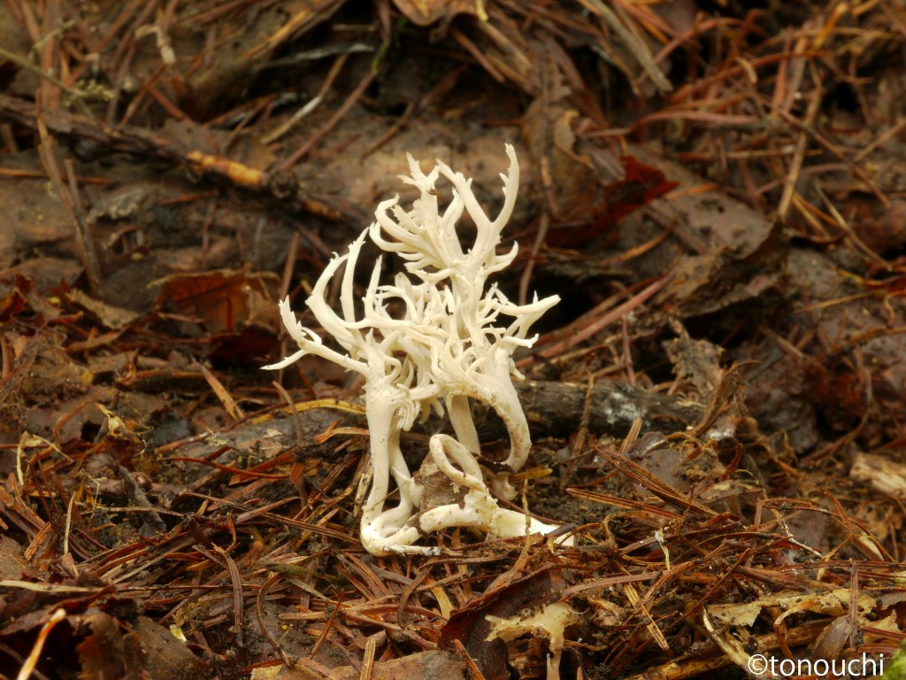 - 子実体は高さ2〜7 cm、枝分かれしながら成長して箒状、白色〜クリーム色。